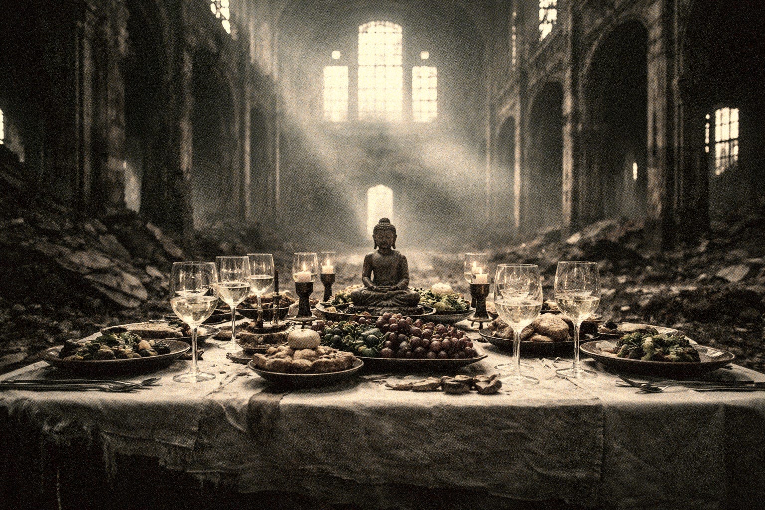 The Buddha briefly came to dinner but was fully vetted and frisked by security before he got through the doors. He was stripped of his golden skin, his superpowers, and his incredible claim to have conquered death itself. He was reduced to a very chilled, very reasonable life coach who wants you to breathe deeply through your nose when your emails pile up. This is the safe Buddha. This is the Buddha who can be discussed in polite society without anyone having to admit they believe in any of that woo-woo.